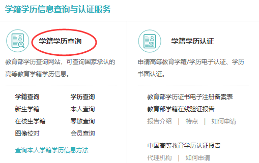 (1)登录学信网官网,点击“学籍学历查询”;