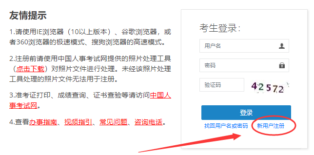 ②进入全国专业技术人员资格考试报名服务平台,点击“新用户注册”;